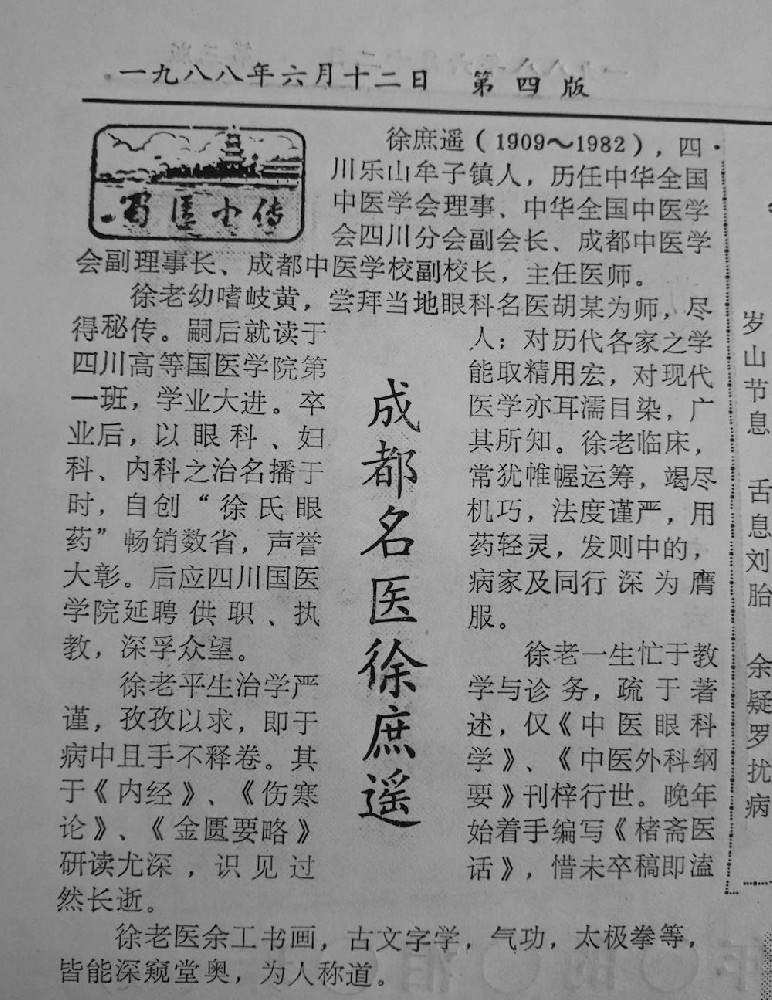 成中医记忆 | 档案里的故事:成都名医徐庶遥